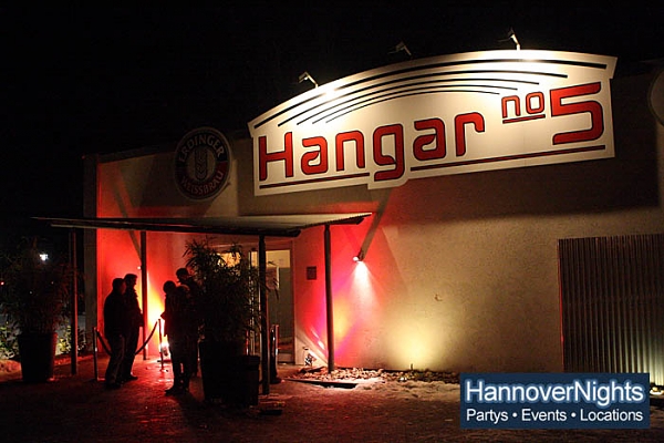 Mit einer Gesamtfläche von 1400m², mehreren stationären Bars, einem großzügigen Garderobenbereich, separatem VIP-Balkon und wandelbaren Konferenzräumen, präsentiert sich der Hangar no.5 in Hannover-Wülfel als logistisches Highlight. Sehr erfolgreich wurden hier in den letzten Jahren Veranstaltungen aller Art und Größenordnung durchgeführt. Die auffällige und ausgefallene Industriearchitektur des Hangar no.5 birgt proffessionelles Servicepersonal, exzellentes Catering und jahrelange Eventerfahrung.